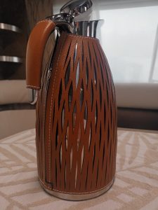 Ce thermos à bec avec protection en cuir offre une isolation optimale pour garder vos boissons chaudes et froides. Son design élégant et sa poignée confortable en font un accessoire parfait pour vos déplacements et moment de détente.